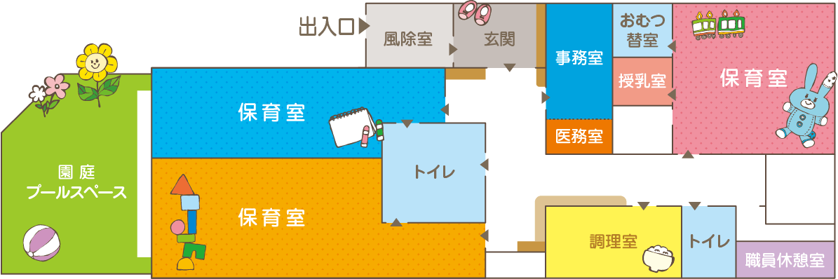 | 定員 | 0歳児…6名 / 1歳児…6名 / 2歳児…7名 |